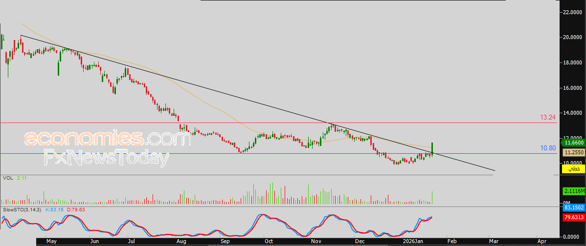 لهذا تشير توقعاتنا إلى صعود سعر السهم خلال تداولاته القادمة، طيلة استقراره اعلى سعر 10.80 ريال، ليستهدف مستوى المقاومة المحوري 13.24 ريال.