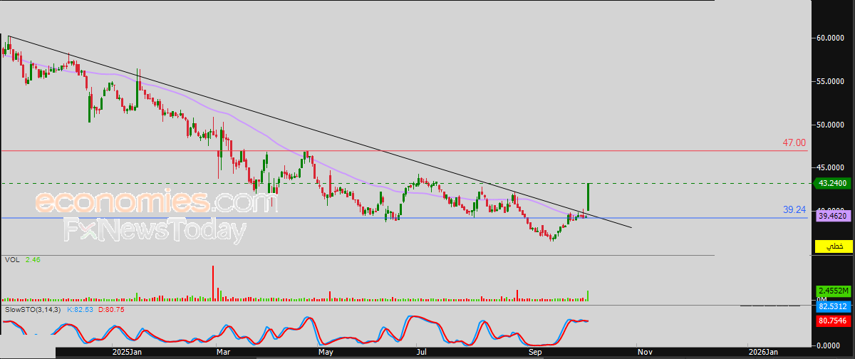 لهذا تشير توقعاتنا إلى صعود سعر السهم خلال تداولاته القادمة، طيلة ثبات مستوى الدعم 39.24 ريال، ليستهدف أولى مستويات المقاومة عند سعر 47.00 ريال.