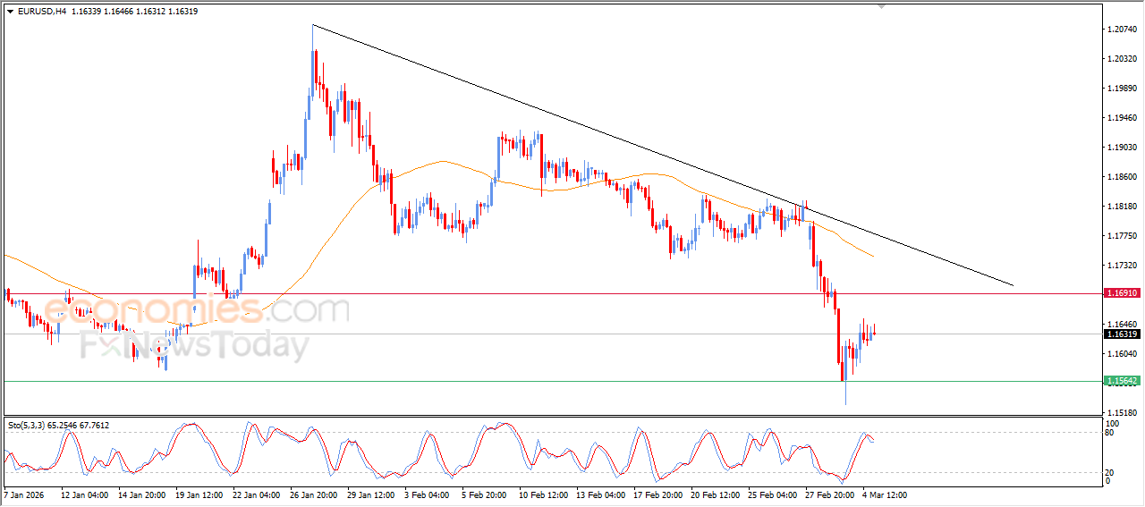بناءاً على ما سبق فتوقعاتنا تميل نحو انخفاض سعر اليورو مقابل الدولار الأمريكي بتداولاته اللحظية القادمة، طيلة ثبات مستوى المقاومة 1.1690، ليستهدف مستوى الدعم 1.1565.