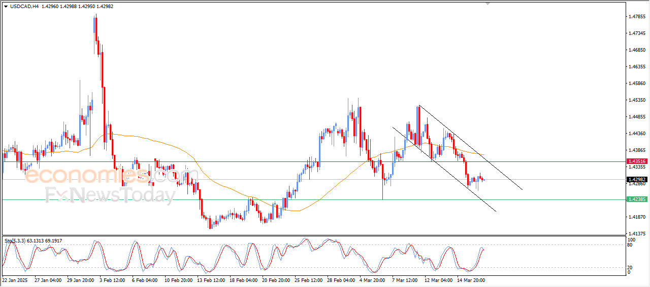 يسيطر على حركة الزوج الاتجاه الهابط بنطاق قناة سعريه فرعية هابطة بدرجة انحدار كبيرة نسبياً ما يدلل على قوة هذا الاتجاه، مع تواصل الضغط السلبي بسبب تداولاته دون متوسطه المتحرك البسيط لفترة 50 شمعة سابقة.