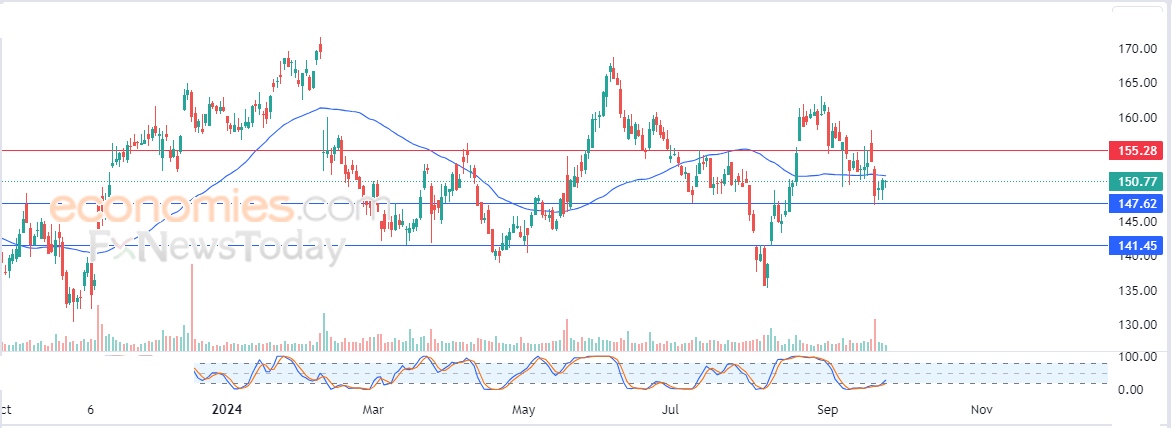لذلك نحن نتوقع المزيد من الهبوط لسعر السهم خلال تداولاته القادمة، خاصة في حالة كسره لمستوى الدعم 147.62$، ليستهدف بعدها أولى مستويات الدعم عند سعر 141.45$.