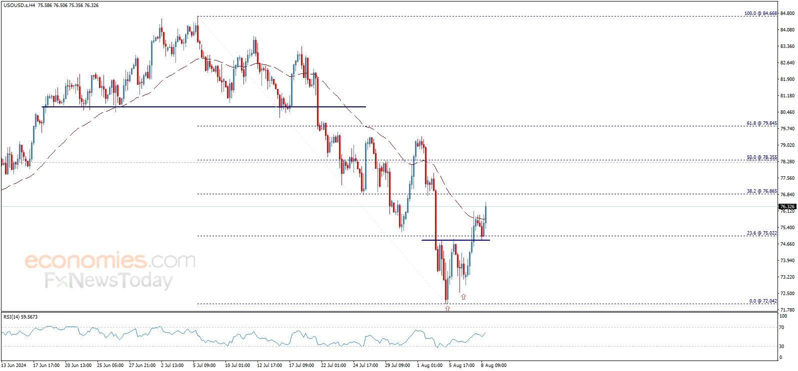 ارتدت تداولات سعر النفط صعوداً بشكل قوي بعد اختبار مستوى 75.00$ في الجلسات الماضية، ليدعم استمرار الاتجاه الصاعد المتوقع على المدى اللحظي، مقترباً من هدفنا المنتظر عند 76.86$، مع الإشارة إلى أن اختراق هذا المستوى سيمد الموجة الصاعدة لتصل إلى 78.35$ كمحطة رئيسية تالية.