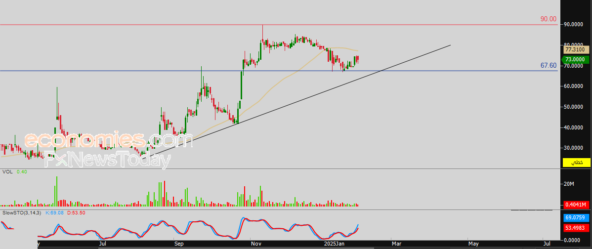 لهذا فتوقعاتنا ترجح عودة صعود سعر السهم خلال تداولاته القادمة، طيلة ثبات مستوى الدعم 67.60 دينار، ليستهدف مستوى المقاومة 90.00 دينار.