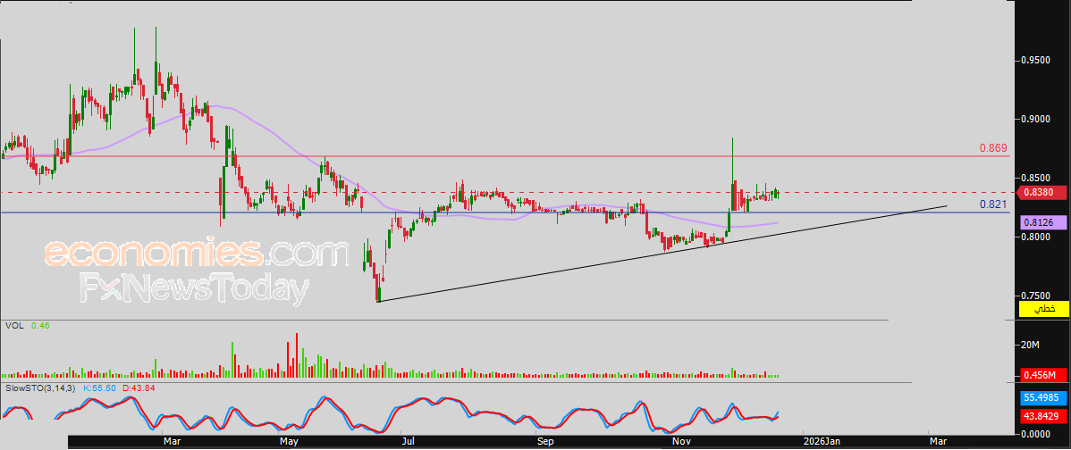لهذا تشير توقعاتنا إلى صعود سعر السهم خلال تداولاته القادمة، طيلة ثبات مستوى الدعم 0.821 ريال، ليستهدف مستوى المقاومة المحوري 0.869 ريال.