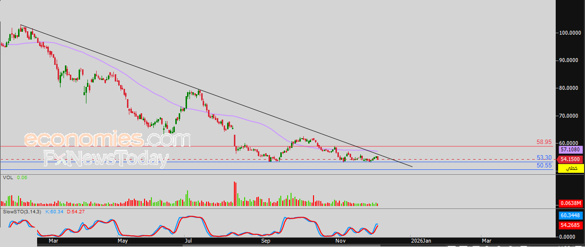 لهذا فتوقعاتنا تشير إلى هبوط سعر السهم خلال تداولاته القادمة، خاصة في حالة كسره للدعم المذكور 53.30 ريال، ليستهدف بعدها مباشرة أولى مستويات الدعم عند سعر 50.55 ريال.