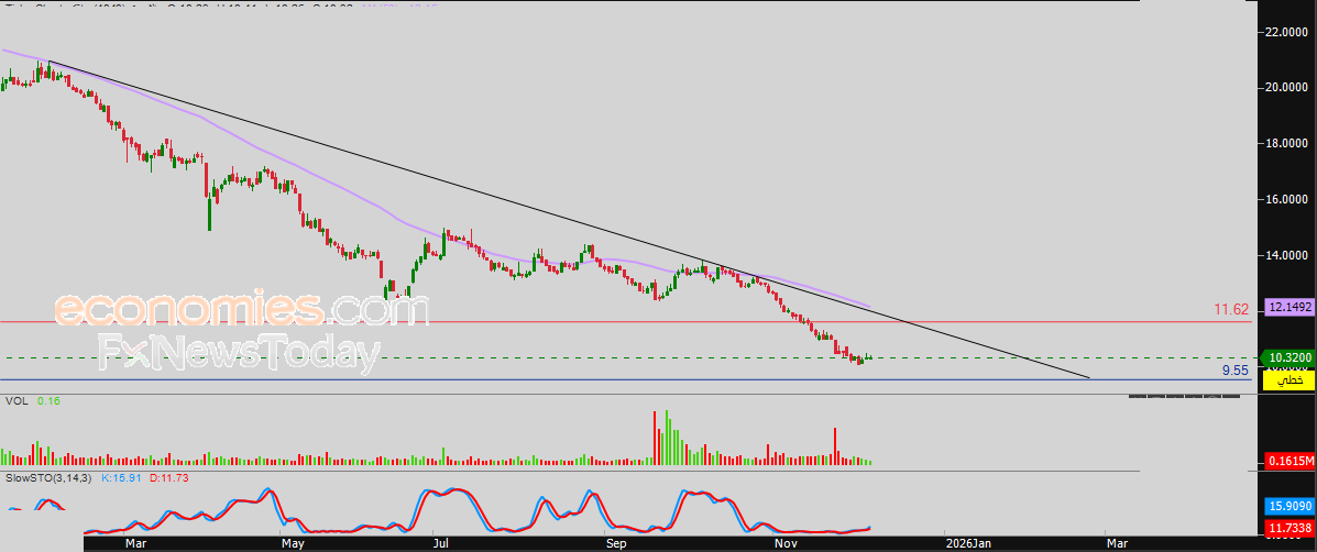 لذلك تشير توقعاتنا إلى هبوط سعر السهم خلال تداولاته القادمة، طيلة ثبات مستوى المقاومة 11.62 ريال، ليستهدف مستوى الدعم 9.55 ريال.