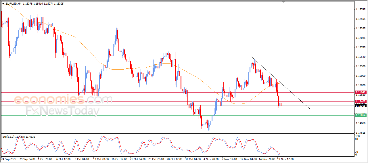 ويأتي هذا الضعف المستمر في ظل بقاء الزوج تحت تأثير الضغط السلبي الناتج عن استقراره دون متوسطه المتحرك البسيط لفترة 50، بالإضافة إلى سيطرة الاتجاه الهابط الرئيسي وتداولات الزوج بمحاذاة خط ميل فرعي شديد الانحدار، ما يحدّ من فرص أي تعافٍ مرتقب على المدى القريب.
