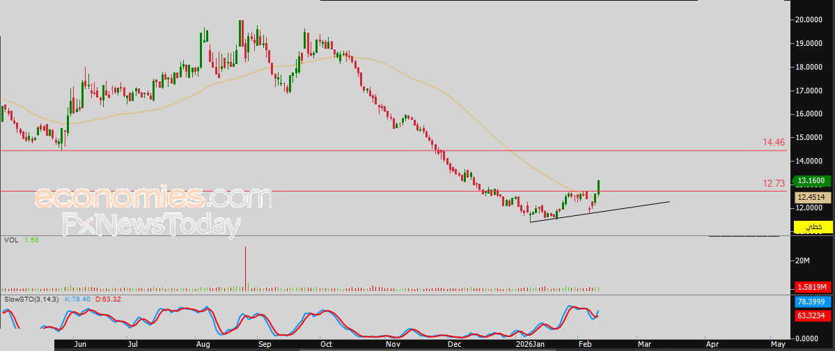 لهذا تشير توقعاتنا إلى صعود سعر السهم خلال تداولاته القادمة، طيلة ثبات مستوى الدعم 11.70 ريال، ليستهدف مستوى المقاومة 13.30 ريال.