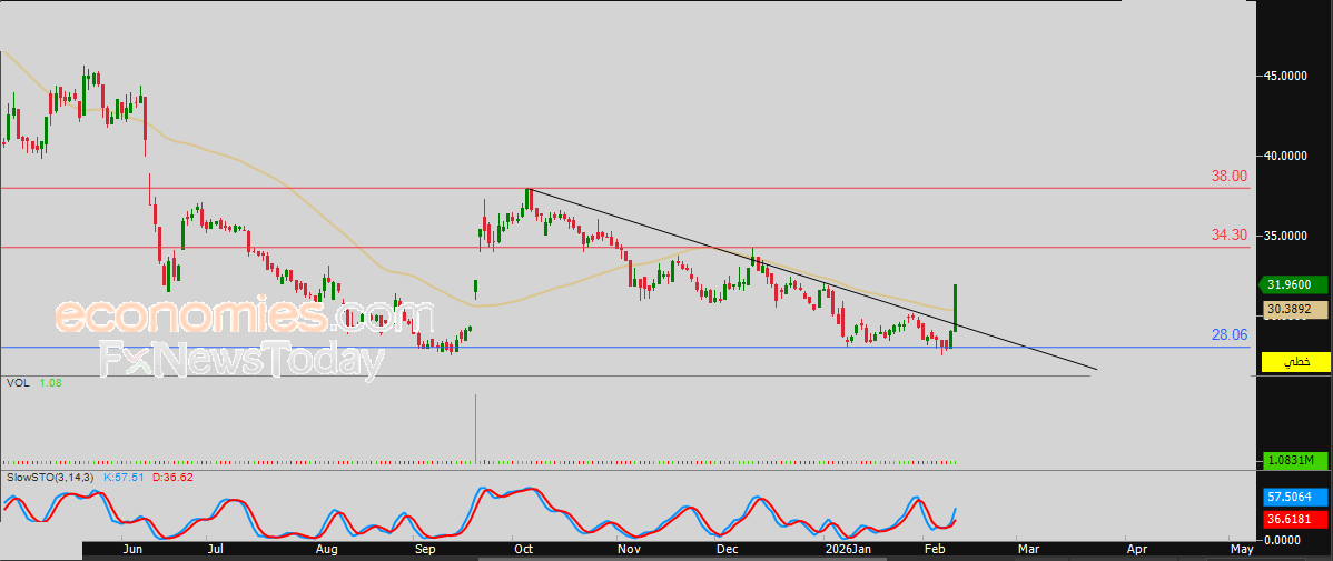 لذلك فتوقعاتنا تشير إلى صعود سعر السهم خلال تداولاته القادمة، طيلة ثبات مستوى الدعم 28.06 ريال، ليستهدف أولى مستويات المقاومة عند سعر 34.30 ريال.