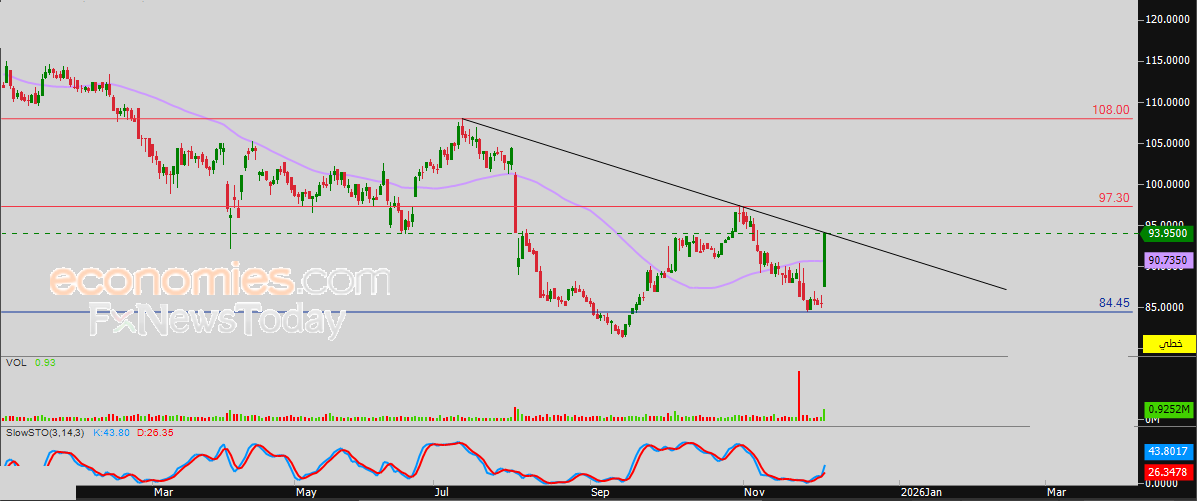 لهذا فتوقعاتنا تشير إلى صعود سعر السهم خلال تداولاته القادمة، طيلة ثبات مستوى الدعم 84.45 ريال، ليستهدف أولى مستويات المقاومة المهمة عند سعر 97.30 ريال، مع وجود فرص قوية لاختراقه.