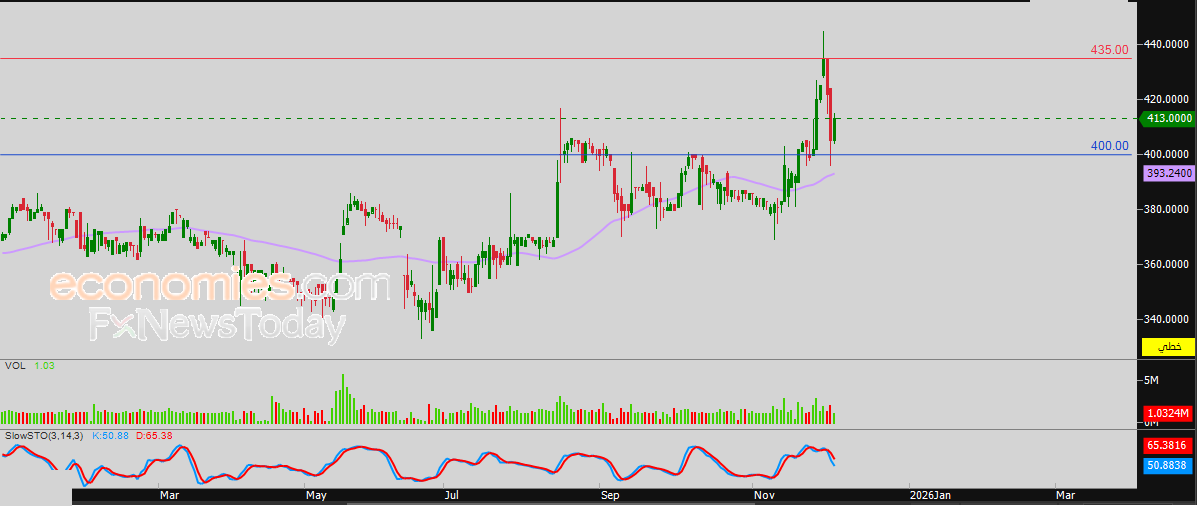لهذا تشير توقعاتنا إلى صعود سعر السهم خلال تداولاته القادمة، بشرط ثبات مستوى الدعم 400.00 دينار، ليستهدف مستوى المقاومة 435.00 دينار.
