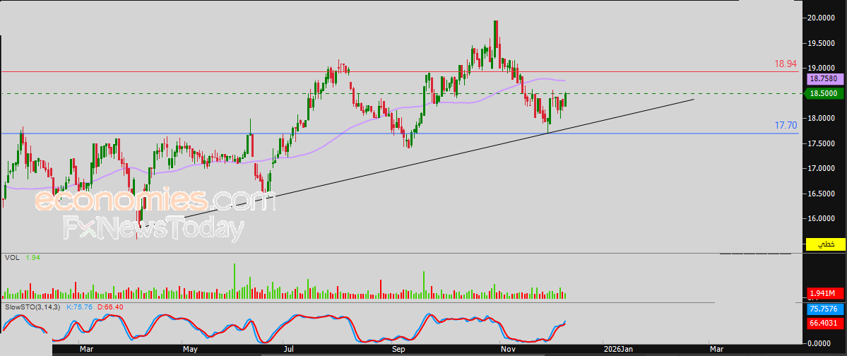 لهذا تشير توقعاتنا إلى ارتفاع سعر السهم خلال تداولاته القادمة، طيلة ثبات مستوى الدعم 17.70 درهم، ليستهدف مستوى المقاومة 18.95 درهم.