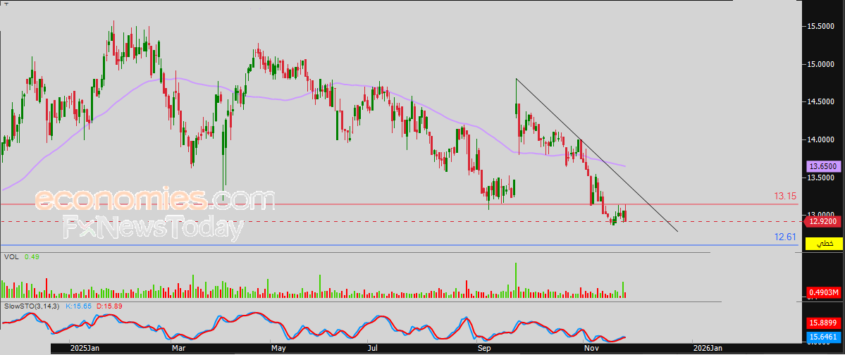 لذلك تشير توقعاتنا إلى هبوط سعر السهم خلال تداولاته القادمة، طيلة ثبات مستوى المقاومة 13.15 ريال، ليستهدف مستوى الدعم 12.60 ريال.