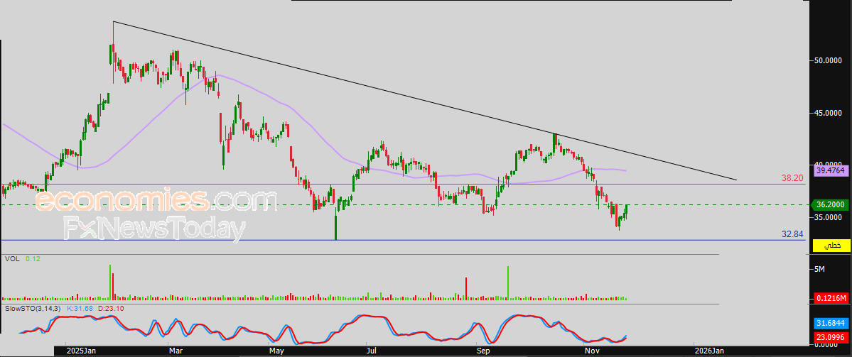 لهذا تشير توقعاتنا إلى انخفاض سعر السهم خلال تداولاته القادمة، طيلة ثبات مستوى المقاومة 38.20 ريال، ليستهدف مستوى الدعم المحوري 32.84 ريال.