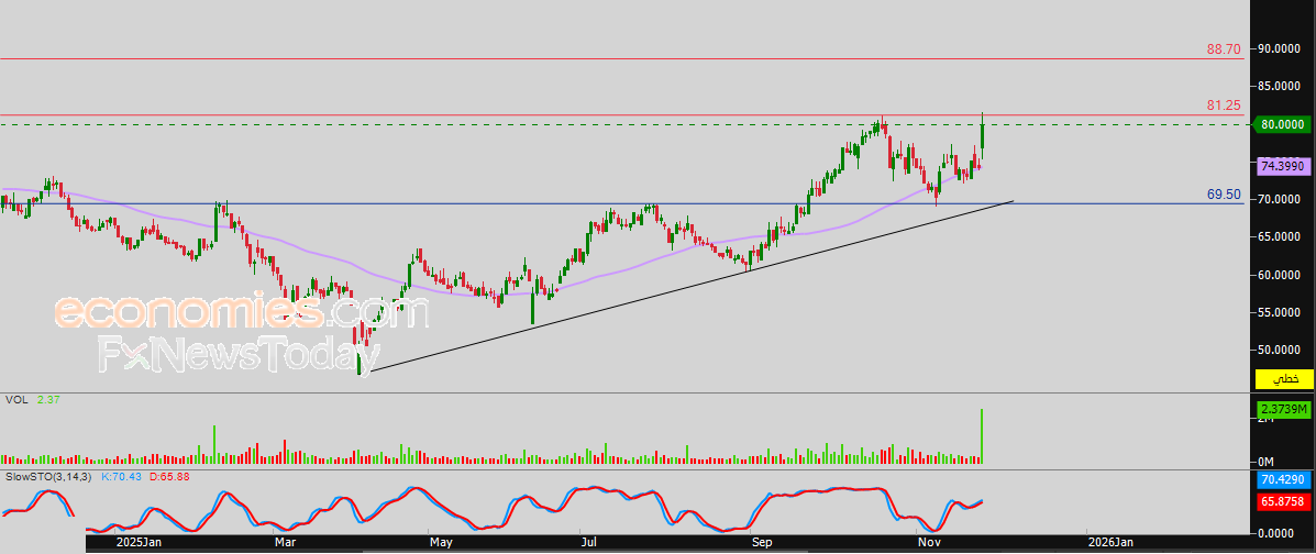 لهذا تشير توقعاتنا إلى صعود سعر السهم خلال تداولاته القادمة، خاصة في حالة اختراقه للمقاومة المذكورة 81.25 ريال، ليستهدف بعدها مقاومته التالية عند سعر 88.70 ريال.