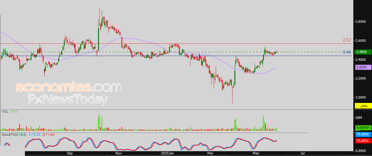لهذا تشير توقعاتنا إلى ارتفاع سعر السهم خلال تداولاته القادمة، طيلة ثبات الدعم 2.44 درهم ليستهدف أولى مستويات المقاومة المهمة عند سعر 2.57 درهم.
