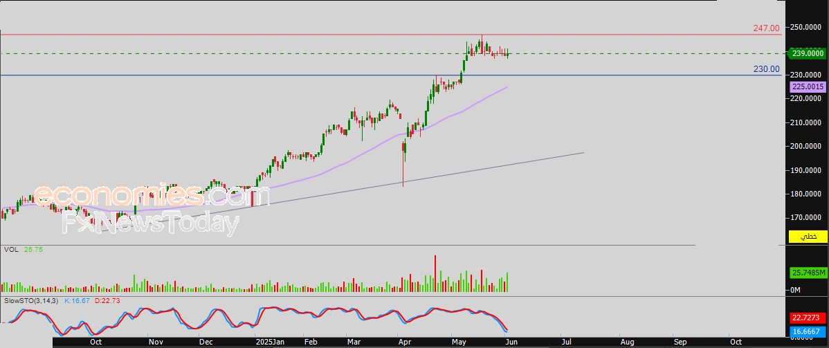 لذلك تشير توقعاتنا إلى ارتفاع سعر السهم خلال تداولاته القادمة، طيلة ثبات مستوى الدعم 230.00 دينار، ليستهدف مستوى المقاومة المهم 247.00 دينار استعداداً لمهاجمته.