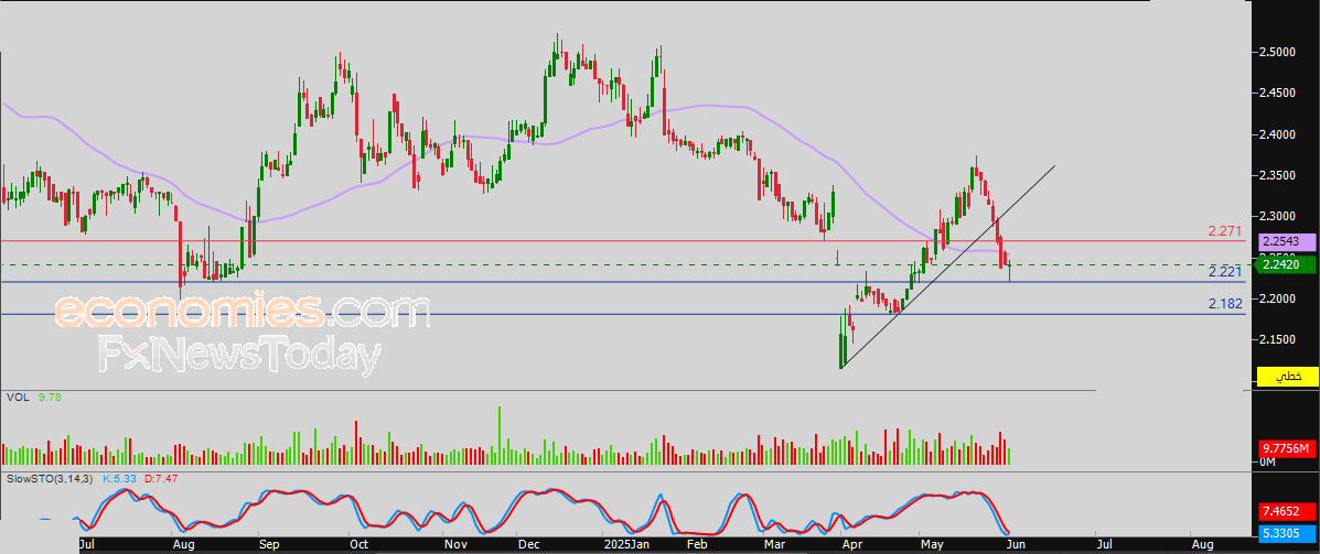 لهذا فتوقعاتنا تشير إلى انخفاض سعر السهم خلال تداولاته القادمة، خاصة في حالة كسره لمستوى الدعم 2.221، ليستهدف بعدها أولى مستويات الدعم عند سعر 2.182ريال.