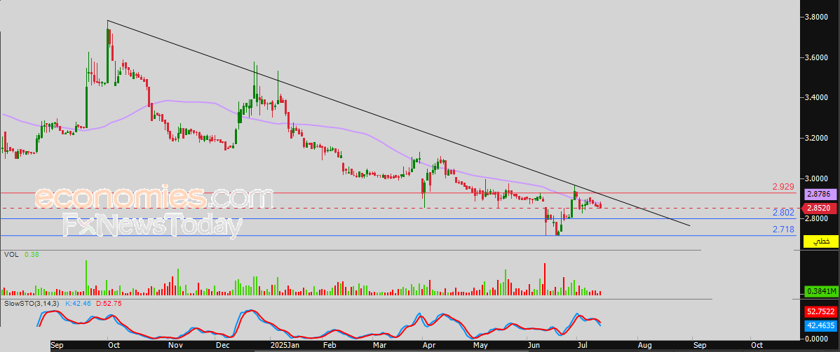 لهذا فتوقعاتنا تشير إلى انخفاض سعر السهم خلال تداولاته القادمة، طيلة ثبات المقاومة 2.929 ريال، ليستهدف أولى مستويات الدعم عند سعر 2.802 ريال.
