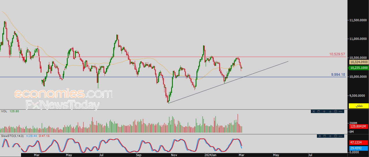 نطاق التداول المتوقع لهذا اليوم ما بين مستوى الدعم 10,000.00، ومستوى المقاومة 10,400.00.