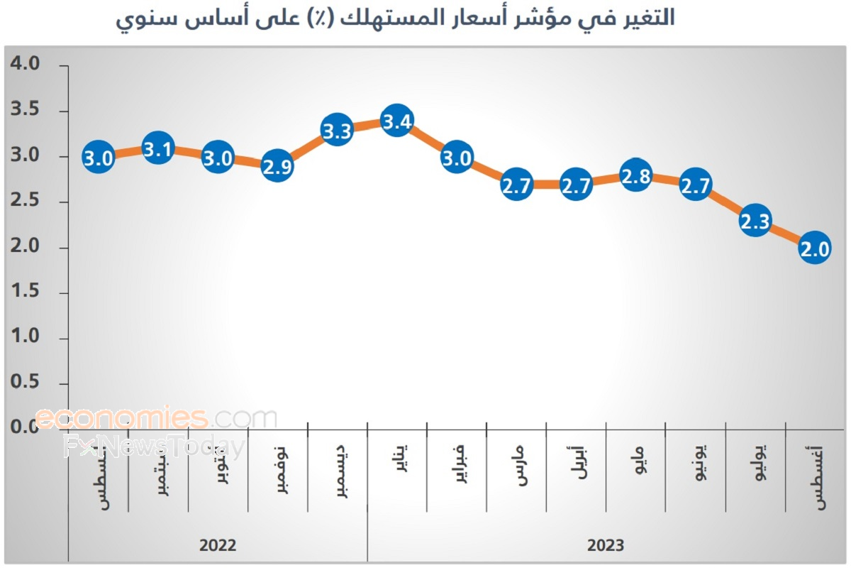 بلغ مؤشر الرقم القياسي لأسعار المستهلك 2.0% في شهر أغسطس لعام 2023م، وهو أقل من الشهر السابق له (يوليو 2023م) عند 2.3%، كذلك هو أقل من أغسطس 2022 حيث كان عند 3%، ويرجع ذلك وبشكل أساسي إلى متانة الاقتصاد السعودي، والأثر الإيجابي الكبير الذي نتج عن الإجراءات والتدابير الاقتصادية التي سارعت المملكة لاتخاذها منذ وقت مبكر لمواجهة موجة الارتفاع العالمي في معدلات التضخم.