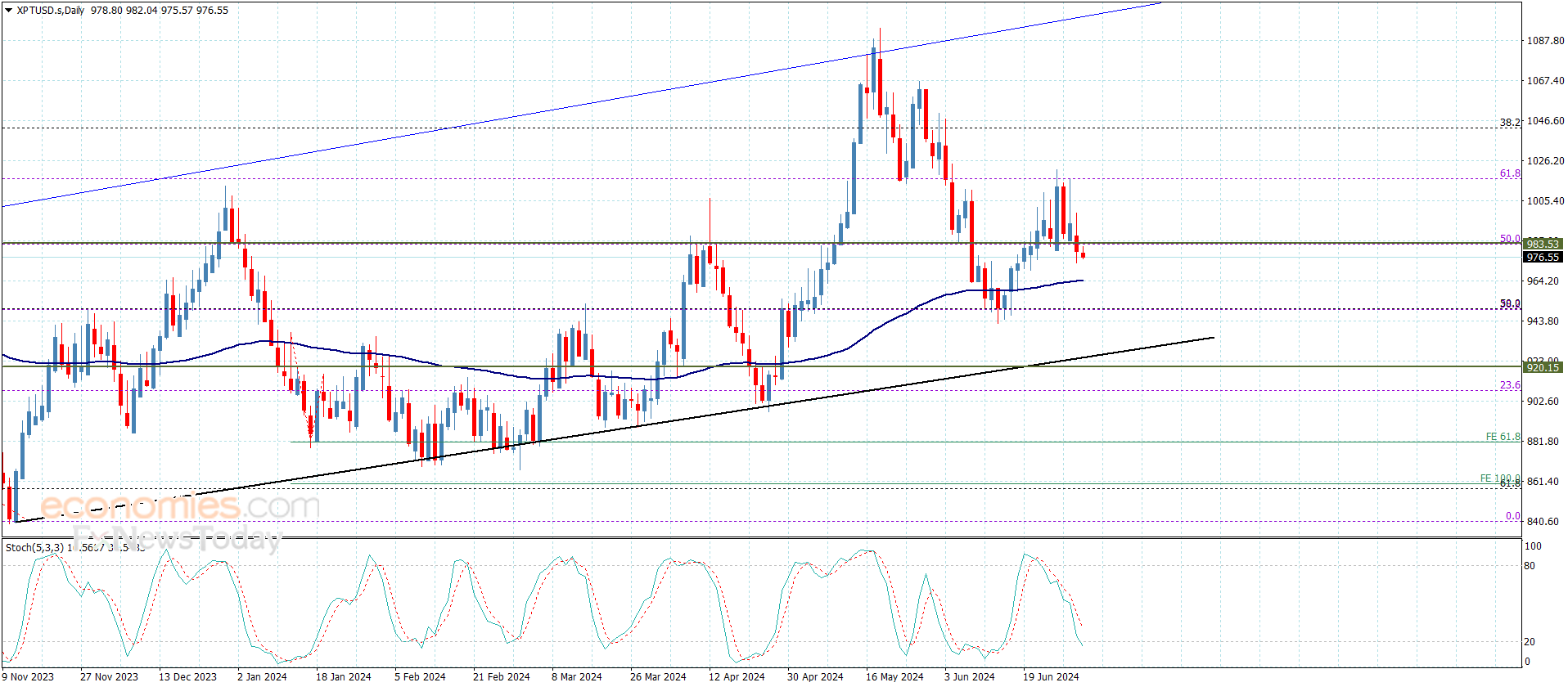 - استسلم سعر البلاتين لتعارض سلبية مؤشر ستوكاستيك أمام محاولة تشكيل محور المتوسط المتحرك 55 لدعم إضافي باستقراره عند 963.00$ مما أكد ذلك تأجيله للاندفاع الصاعد بتسلله دون مستوى 983.00$ مقدما بعض التداولات الجانبية.