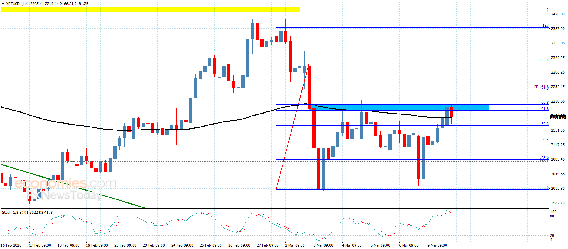تعرض سعر البلاتين بتداولات يوم أمس لبعض الضغوط الإيجابية ليجبره ذلك على الاندفاع نحو 2210.00$ ليعيد بذلك اختبار مستوى تصحيح 66.8% فيبوناتشي والذي يشكل بدوره حاجز مهم أمام تحديد الاتجاه المتوقع للتداولات القريبة.