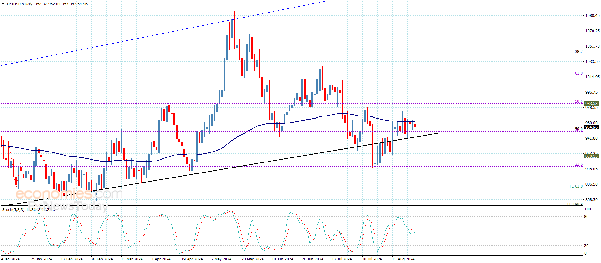 قدّم سعر البلاتين إغلاق سلبي جديد دون محور المتوسط المتحرك 55 المتمركز عند 962.00$ ليستمر بتشكيل عائق إضافي أمام المحاولات الصاعدة الأخيرة لنلاحظ تفاعله حاليا مع الضغوط السلبية بتسلله نحو 952.00$.