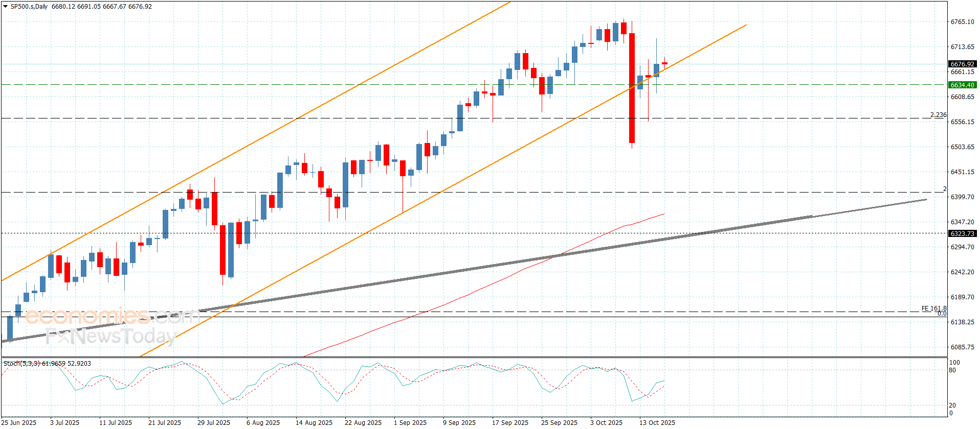 سجّل سعر المؤشر يوم أمس بعض المكاسب الملموسة باندفاعه نحو 6730.00 إلا أن ضعف العزم الإيجابي دفع به للعودة لاختبار دعم القناة الصاعدة والممتد نحو 6665.00.