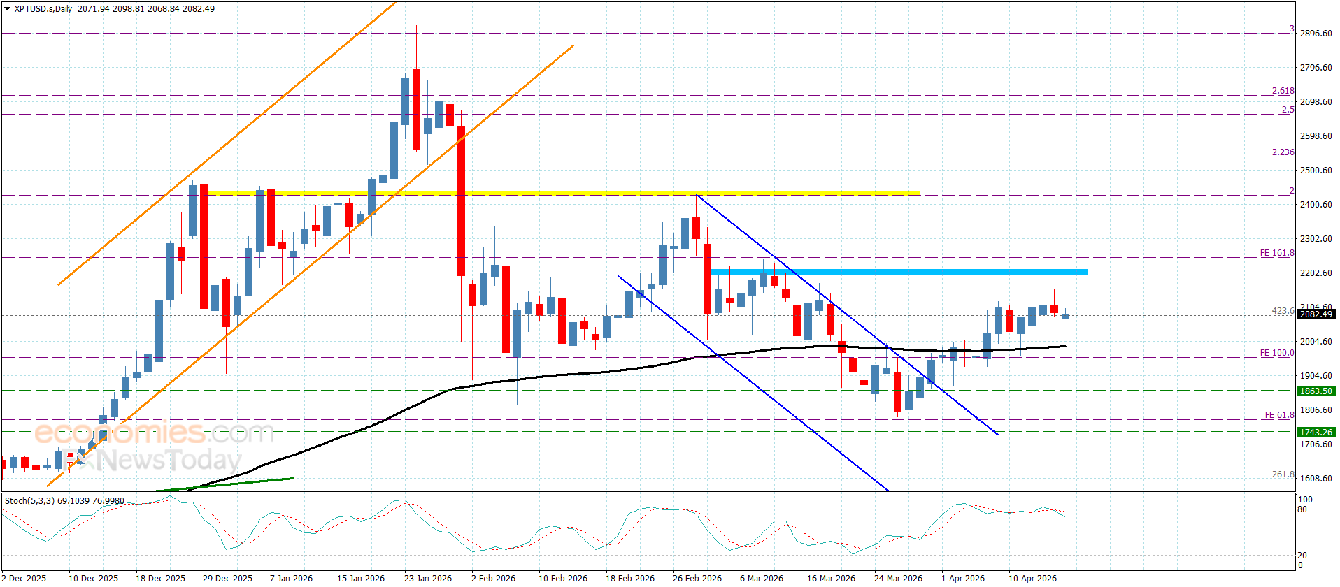 اضطر سعر البلاتين لتأجيل الهجوم الصاعد وتقديمه لتداولات جانبية ضعيفة بتذبذبه المتكرر قرب مستوى 2075.00 نتيجة لتعارض المؤشرات الرئيسية تحديدا بخروج مؤشر ستوكاستيك حاليا من مستوى تشبع الشراء كما هو واضح بالرسم المرفق.