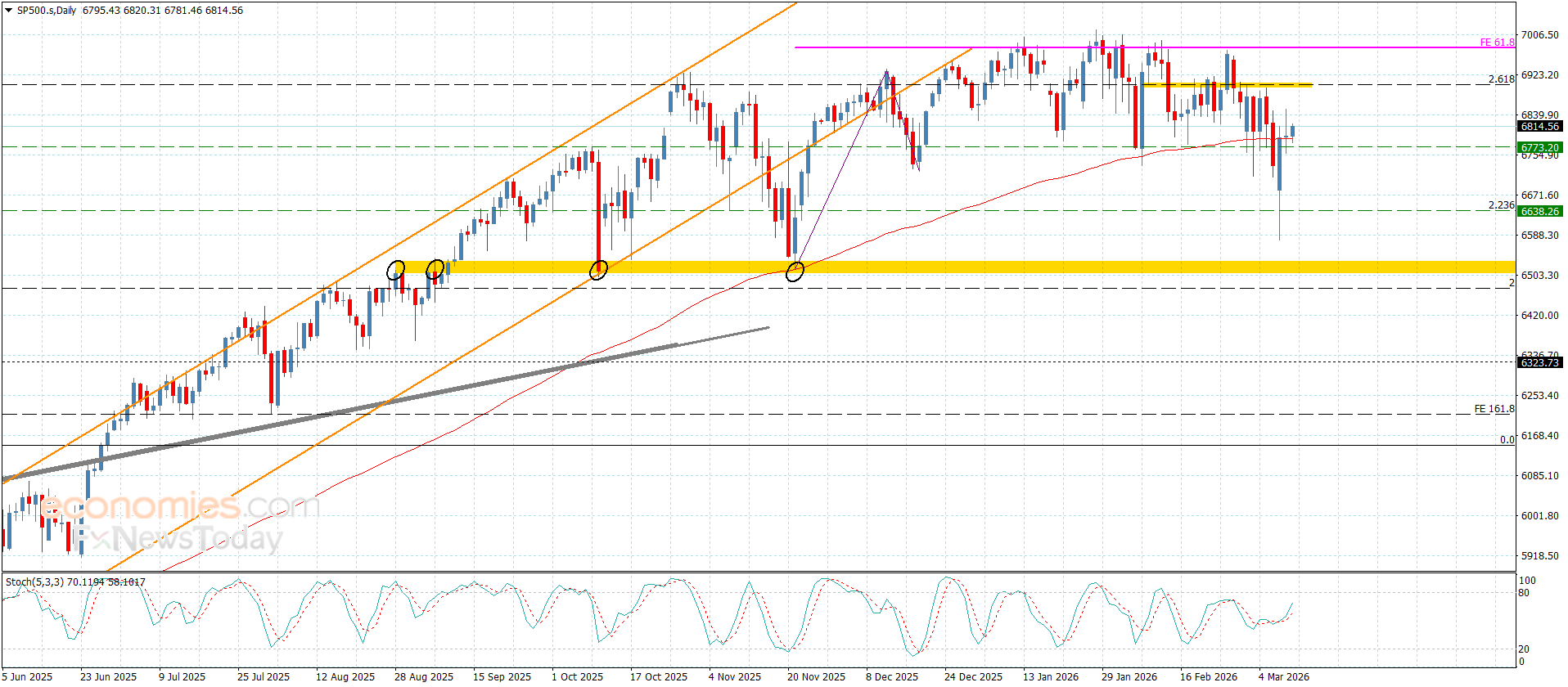 نطاق التداول المتوقع لهذا اليوم ما بين 6725.00 و 6860.00