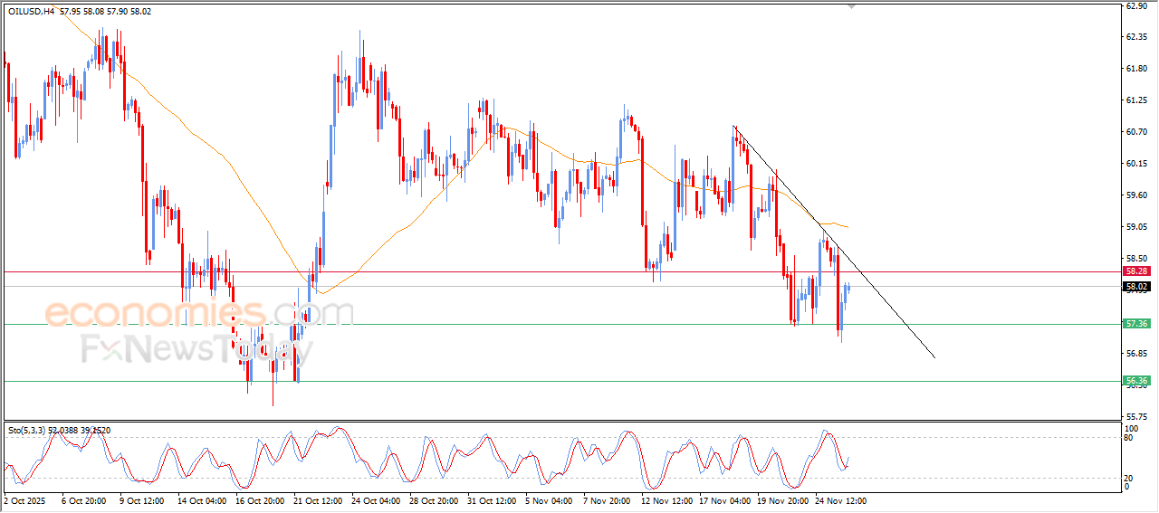 ورغم هذا التحسن إلا أن النفط لا يزال يخضع لضغط سلبي واضح نتيجة استمرار تداوله دون متوسطه المتحرك البسيط لفترة 50، وهو ما يحد من فرص التعافي الكامل على المدى القريب، كما يتحرك السعر بمحاذاة خط اتجاه فرعي هابط شديد الانحدار، لتبقى النظرة الفنية قصيرة الأجل أكثر ميلاً للهبوط ما لم ينجح السعر في اختراق مستويات المقاومة الرئيسية.