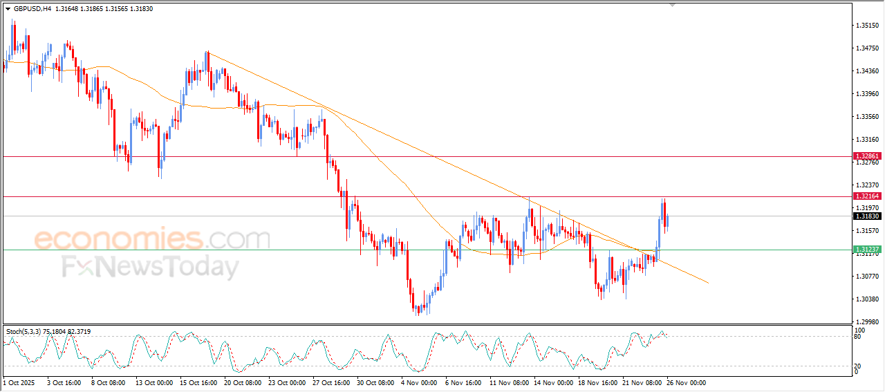 ارتفع سعر الجنيه الإسترليني مقابل الدولار الأمريكي (GBPUSD) خلال تداولاته اللحظية الأخيرة، بعدما نجح في تحركاته المبكرة بجني أرباحه السابقة، بالإضافة لتصريف البعض من تشبعه الشرائي الواضح بمؤشرات القوة النسبية، ليمنحه مساحة أكبر لتحقيق مكاسب زيادة في الفترة القادمة، خاصة وأنه يستعد حالياً بمهاجمة مستوى المقاومة المحوري 1.3215، في ظل تأثره باختراق خط اتجاه رئيسي هابط على المدى القصير، مدعوماً بتداولاته أعلى متوسطه المتحرك البسيط لفترة 50، ما يعزز من فرص تمديد مكاسبه.