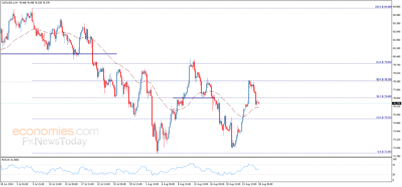وبالتالي، نحن نتوقّع أن نشهد مزيد من الانخفاض خلال الجلسات القادمة، مع الانتباه إلى أن اختراق 76.86$ سيوقف الضغط السلبي الحالي ويقود السعر للارتفاع من جديد.