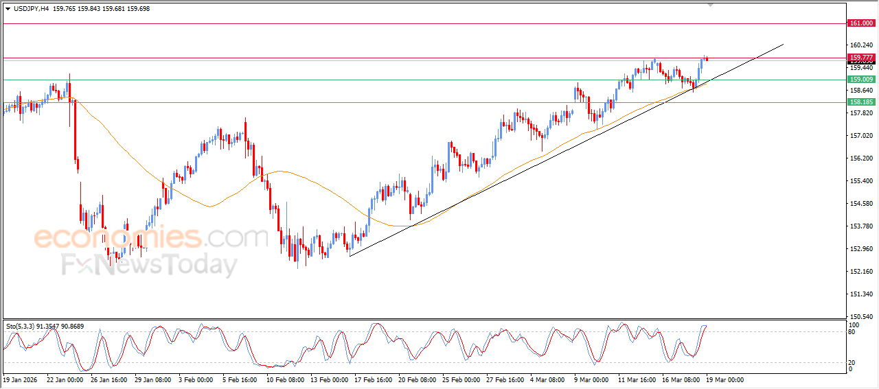 يستقر سعر الدولار مقابل الين الياباني (USDJPY) على متتالية مكاسب قوية خلال تداولاته اللحظية الأخيرة، ليهاجم الزوج حالياً مستوى المقاومة المحوري 159.75، وسط استمرار الضغط ا لإيجابي الناتج من تداولاته أعلى متوسطه المتحرك البسيط لفترة 50، والذي يعزز من استقرار وهيمنة الاتجاه الرئيسي الصاعد على المدى القصير، خاصة مع تحركاته بمحاذاة خط ميل داعم لهذا المسار، ولكن في المقابل من ذلك نلاحظ بدء ظهور تقاطع سلبي بمؤشرات القوة النسبية، بعد وصولها لمناطق شديدة التشبع بعمليات الشراء، وهو ما قد يعيق ولو بشكل مؤقت من صعود الزوج في الفترة القريبة القادمة.