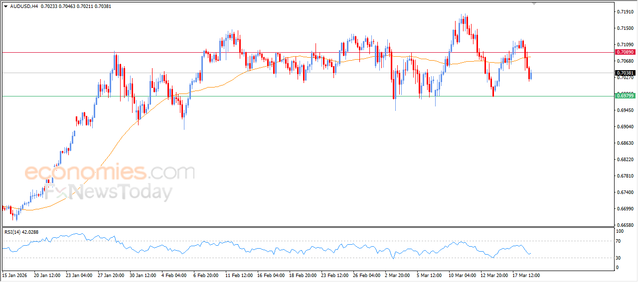 تقدم بشكل حذر سعر الدولار الأسترالي مقابل الدولار الأمريكي (AUDUSD) خلال تداولاته اللحظية الأخيرة، في محاولة من الزوج لتعويض البعض مما تكبده من خسائر سابقة، وسط هيمنة موجة فرعية وتصحيحية هابطة شديدة الانحدار على المدى القصير، مع وجود ضغط سلبي ديناميكي متمثل في تداولاته دون متوسطه المتحرك البسيط لفترة 50، ما يقلص من فرص تعافي الزوج على المدى القريب، خاصة وأن هذا يأتي وفي الخلفية منه توارد الإشارات السلبية من مؤشرات القوة النسبية.