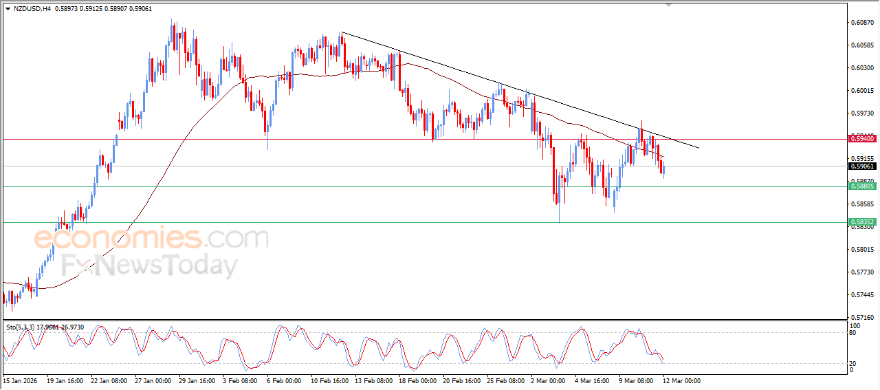 تقدم قليلاً سعر الدولار النيوزيلندي مقابل الدولار الأمريكي (NZDUSD) بتداولاته اللحظية الأخيرة، في محاولة يائسة من الزوج لتعويض جزء مما تكبده من خسائر سابقة، وسط استمرار الضغط السلبي نتيجة تداولاته دون متوسطه المتحرك البسيط لفترة 50، ما يقلص من فرص تعافي الزوج على المدى القريب، خاصة مع تحركاته بمحاذاة خط اتجاه تصحيحي هابط على المدى القصير، مع توارد الإشارات السلبية من مؤشرات القوة النسبية، بالرغم من وصولها لمناطق شديدة التشبع بعمليات البيع.