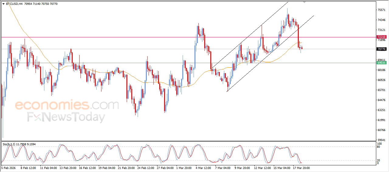 استقر سعر البتكوين (BTCUSD) على تراجع حاد خلال تداولاته اللحظية الأخيرة، متأثراً بخروجه من نطاق قناة سعرية فرعية صاعدة كانت تقيد تحركاته على المدى القصير، في إشارة سلبية تعكس ضعف الزخم الصاعد.