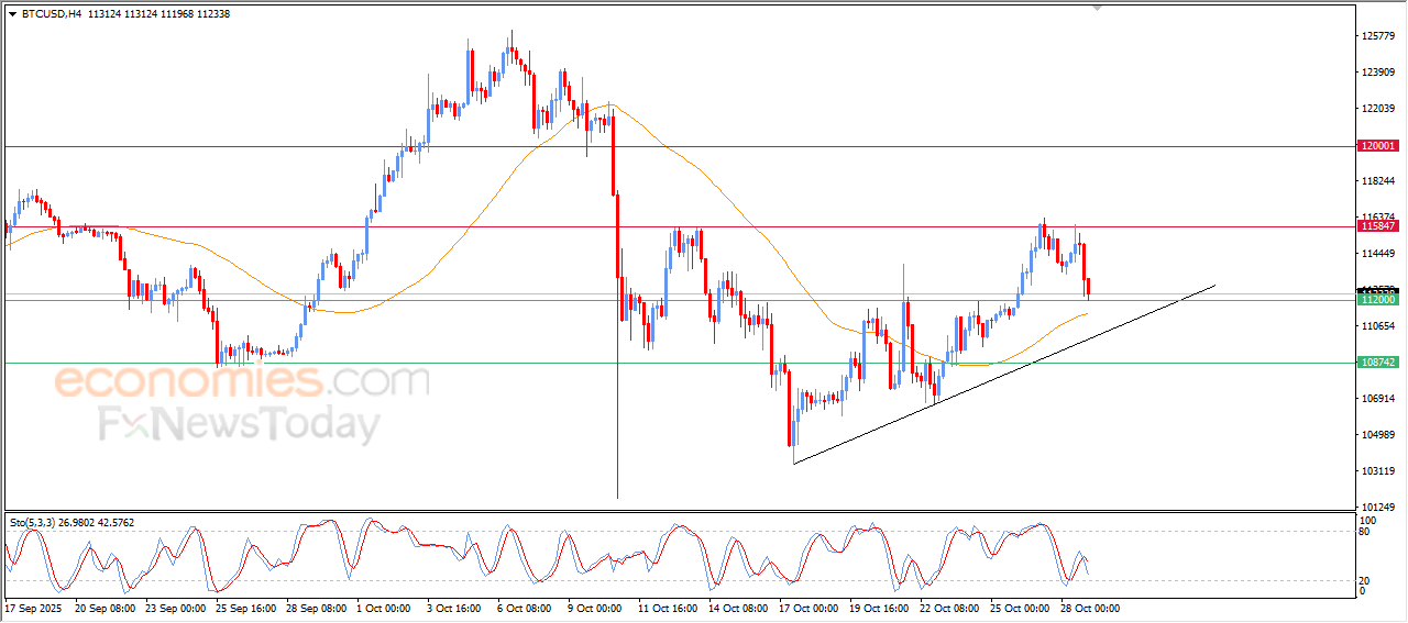 وقد جاء هذا التراجع مع اقتراب السعر من مستوى الدعم المهم 112,000$، والمتزامن مع دعم متوسطه المتحرك البسيط لفترة 50، وهو ما يمنح تداولاته فرصة للتماسك وإعادة المحاولة للتعافي مجدداً، خاصة في ظل استمرار الاتجاه التصحيحي الصاعد المهيمن على المدى القصير وتداولاته بمحاذاة خط ميل داعم لهذا المسار.