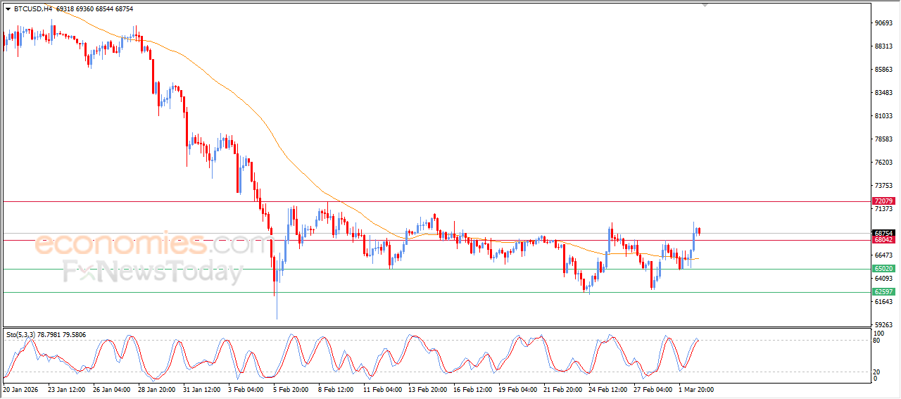 سعر البتكوين (BTCUSD) يستقر بمنطقة إيجابية – توقعات اليوم – 03-03-2026