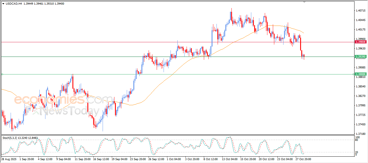 تراجع بحدة سعر الدولار مقابل الدولار الكندي (USDCAD) خلال تداولاته اللحظية الأخيرة، ليصل الزوج بانخفاضه الأخير إلى مستوى الدعم 1.3940، هذا الدعم الذي كان مستهدفاً سعرياً لنا بتحليلاتنا السابقة، في ظل سيطرة موجة تصحيحية هابطة على المدى القصير، بالإضافة لاستمرار الضغط السلبي الناتج من تداولاته دون متوسطه المتحرك البسيط لفترة 50 والذي يضاعف من الضغط السلبي المحيط بالزوج، ولكن في المقابل نلاحظ بدء ظهور تقاطع إيجابي بمؤشرات القوة النسبية، بعد وصولها لمناطق شديدة التشبع بعمليات البيع، ما قد يكبح من خسائر الزوج القادمة.