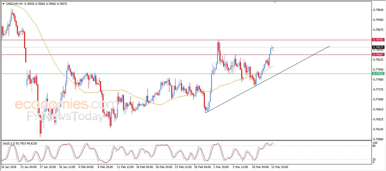 صعد سعر الدولار مقابل الفرنك السويسري (USDCHF) بشكل حاد خلال تداولاته اللحظية الأخيرة، بعدما نجح في اختراق مستوى المقاومة 0.7835، تلك المقاومة التي كانت هدفاً سعرياً لنا بتحليلاتنا السابقة، وسط سيطرة الاتجاه التصحيحي الصاعد على المدى القصير، مع تحركاته بمحاذاة خط ميل فرعي داعم لهذا المسار، بالإضافة لاستمرار الضغط الديناميكي الإيجابي نتيجة تداولاته أعلى متوسطه المتحرك البسيط لفترة 50، ولكن في المقابل من ذلك نلاحظ بدء ظهور تقاطع سلبي بمؤشرات القوة النسبية، بعد وصولها لمناطق شديدة التشبع بعمليات الشراء، وهو ما قد يكبح من مكاسب الزوج القادمة.