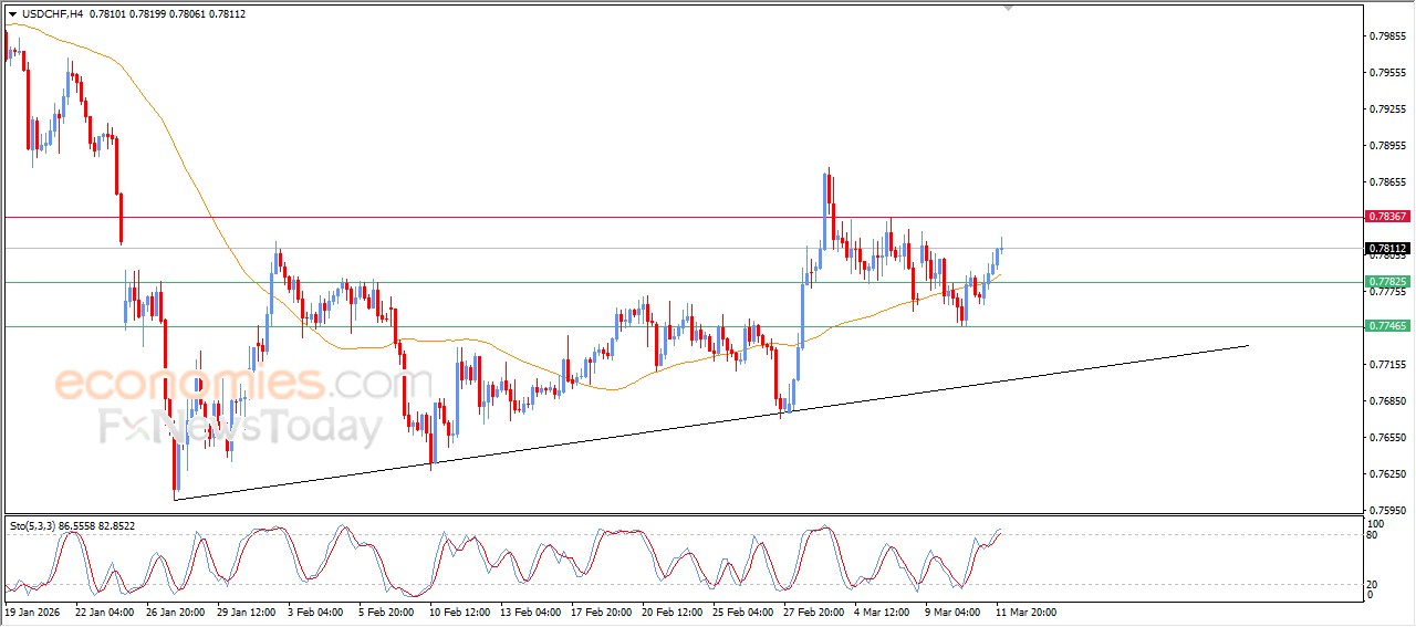 يستقر سعر الدولار مقابل الفرنك السويسري (USDCHF) على مكاسب متتالية خلال مستوياته اللحظية الأخيرة، مستفيداً من الدعم الديناميكي المتمثل في تداولاته أعلى متوسطه المتحرك البسيط لفترة 50، والذي يعزز من استقرار وهيمنة الاتجاه التصحيحي الصاعد على المدى القصير، مع تحركاته بمحاذاة خط ميل داعم لهذا المسار، كما نلاحظ أيضاً توارد الإشارات الإيجابية من مؤشرات القوة النسبية، بالرغم من وصولها لمناطق شديدة التشبع بعمليات الشراء، ما قد يكبح من مكاسبه القادمة.