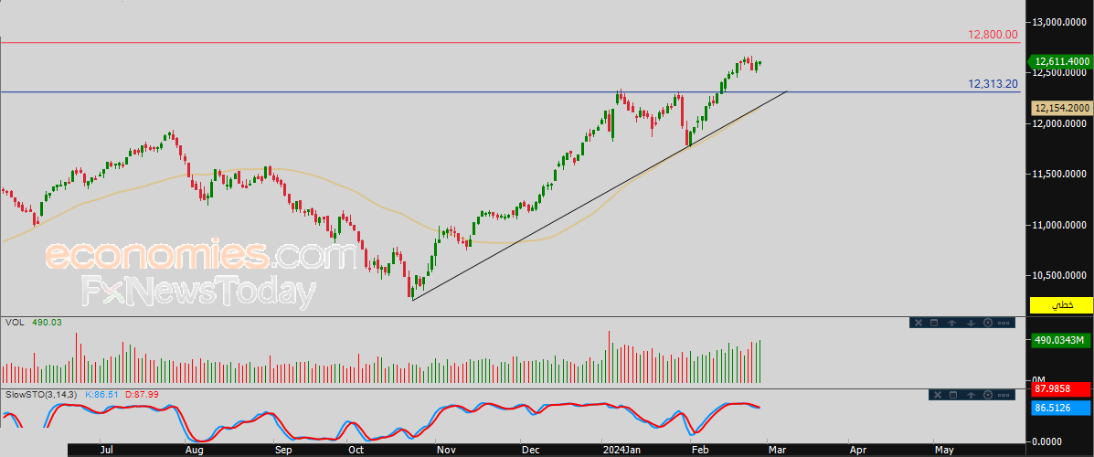 نطاق التداول المتوقع لهذا اليوم ما بين مستوى الدعم 12,400.00 ومستوى المقاومة 12,800.00.