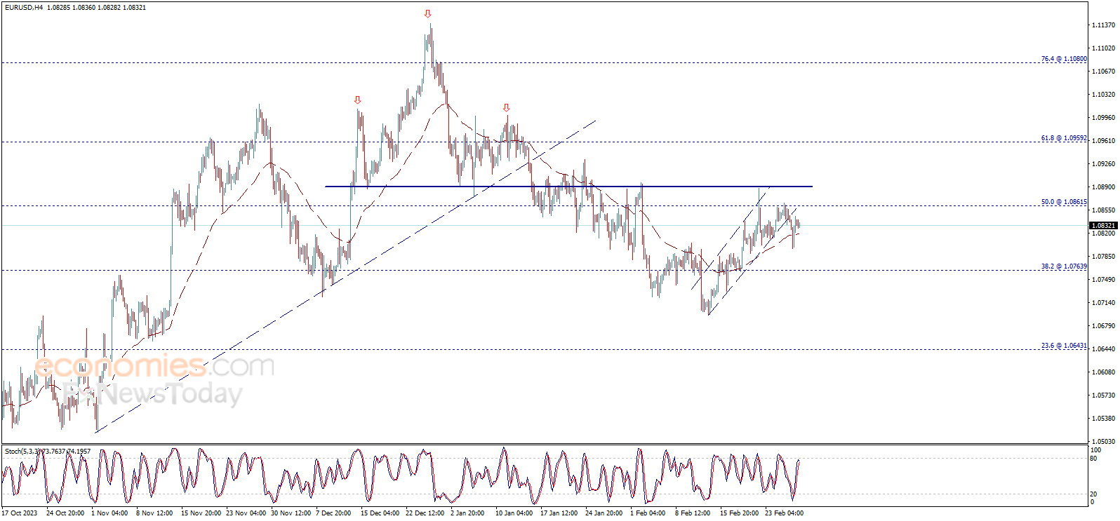 من هنا، فإننا مستمرون بترجيح الاتجاه الهابط على المدى اللحظي، مع الانتباه إلى أن اختراق مستويات 1.0860 ثم 1.0890 سيوقف الانخفاض المتوقع ويقود السعر للتحوّل إلى الارتفاع.