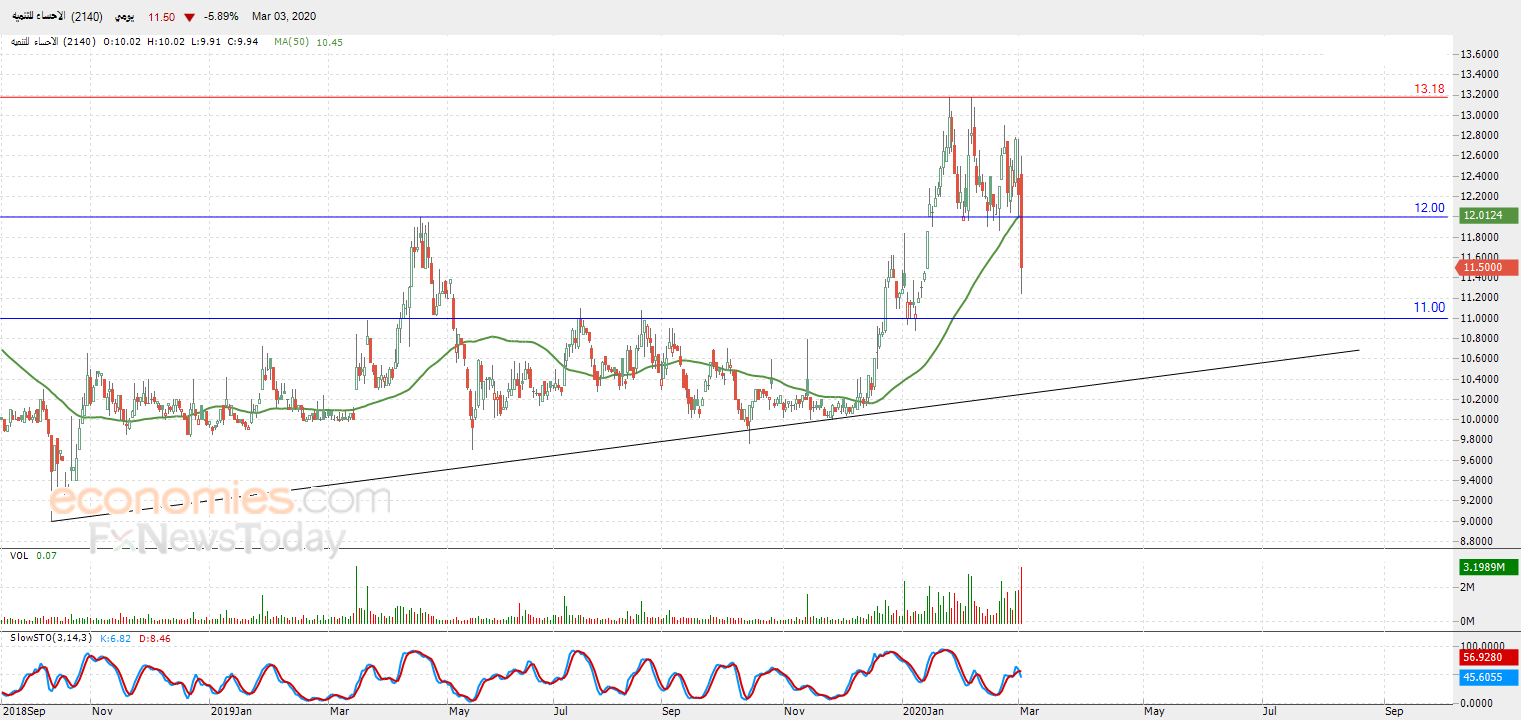 نطاق التداول المتوقع لهذا اليوم ما بين مستوى الدعم 11.00 ومستوى المقاومة 12.00.