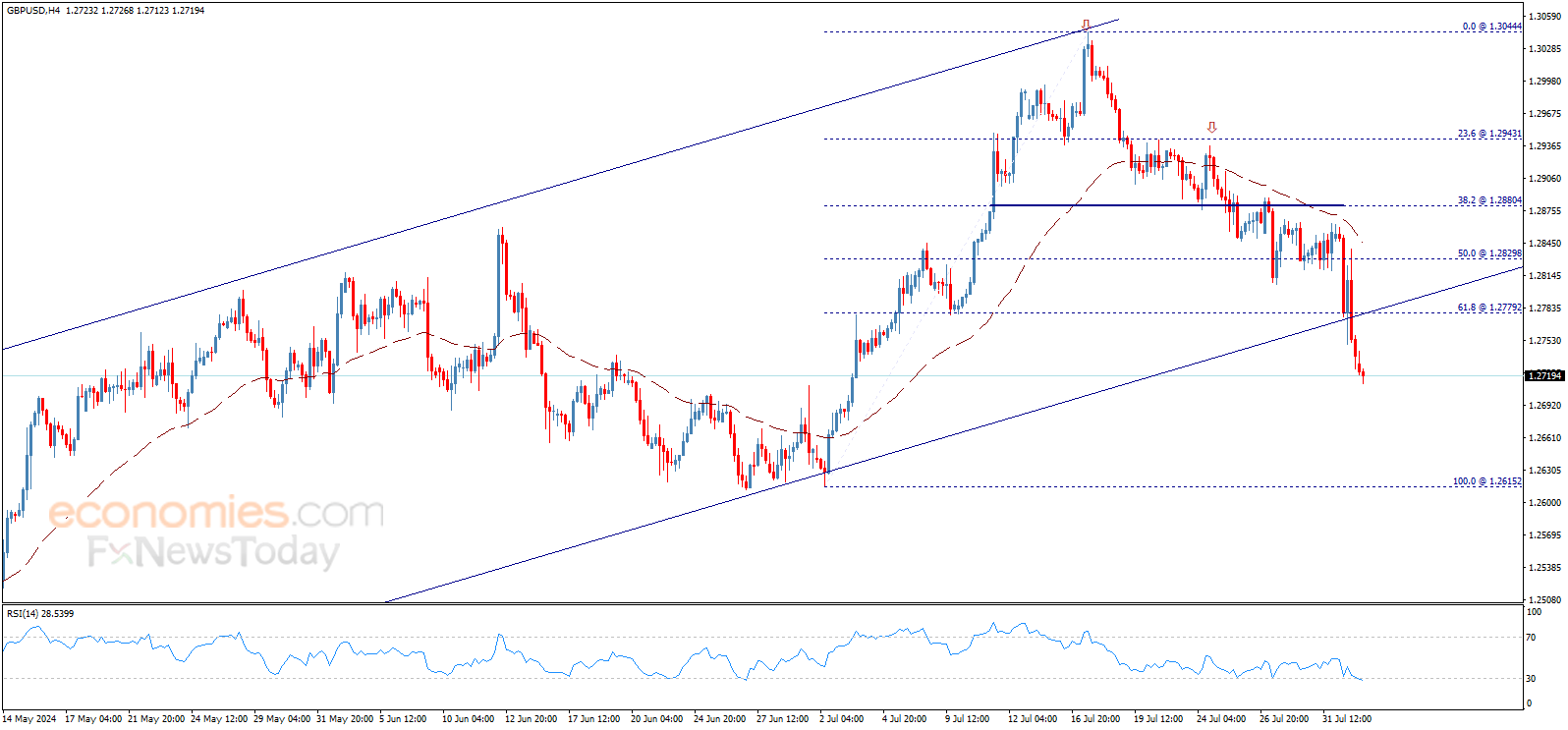 لذلك، سيبقى الاتجاه الهابط قائماً خلال الجلسات القادمة، متأثراً بنموذج القمة المزدوجة المكتمل مسبقاً، مع الإشارة إلى أن اختراق 1.2780$ سيوقف الضغط السلبي الحالي ويقود السعر لبدء محاولات تعافي على المدى اللحظي.
