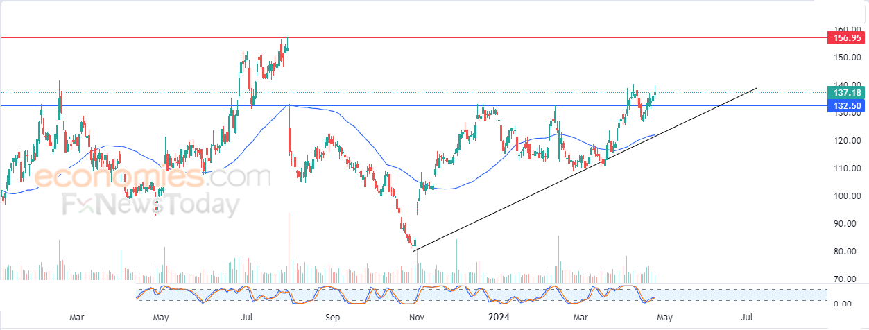 لهذا نحن نتوقع المزيد من الصعود لسعر السهم خلال تداولاته القادمة، خاصة طيلة استقراره فوق مستوى 132.50$، ليستهدف مستوى المقاومة المحوري 156.95.
