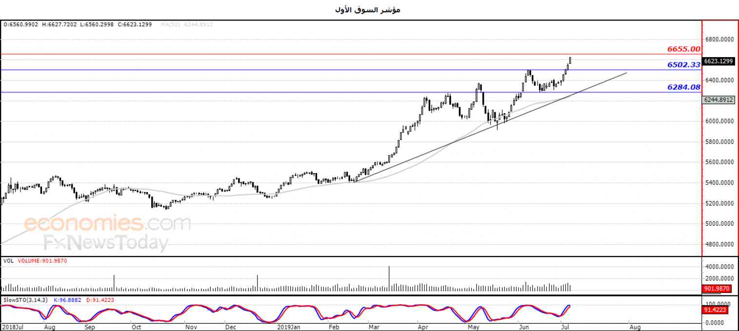 نطاق التداول المتوقع لهذا اليوم ما بين مستوى الدعم 6506.90 ومستوى المقاومة 6655.00 .