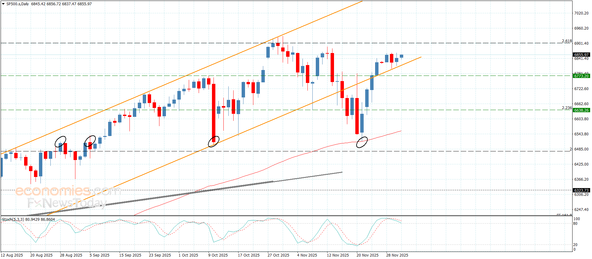 استغل سعر المؤشر الثبات الإيجابي المتكرر فوق الدعم الإضافي المتمركز عند 6775.00 ليعزز ذلك من ثباته ضمن محاور القناة الصاعدة لنلاحظ محاولة تسجيله لبعض المكاسب بوصوله حالي نحو 6855.00.